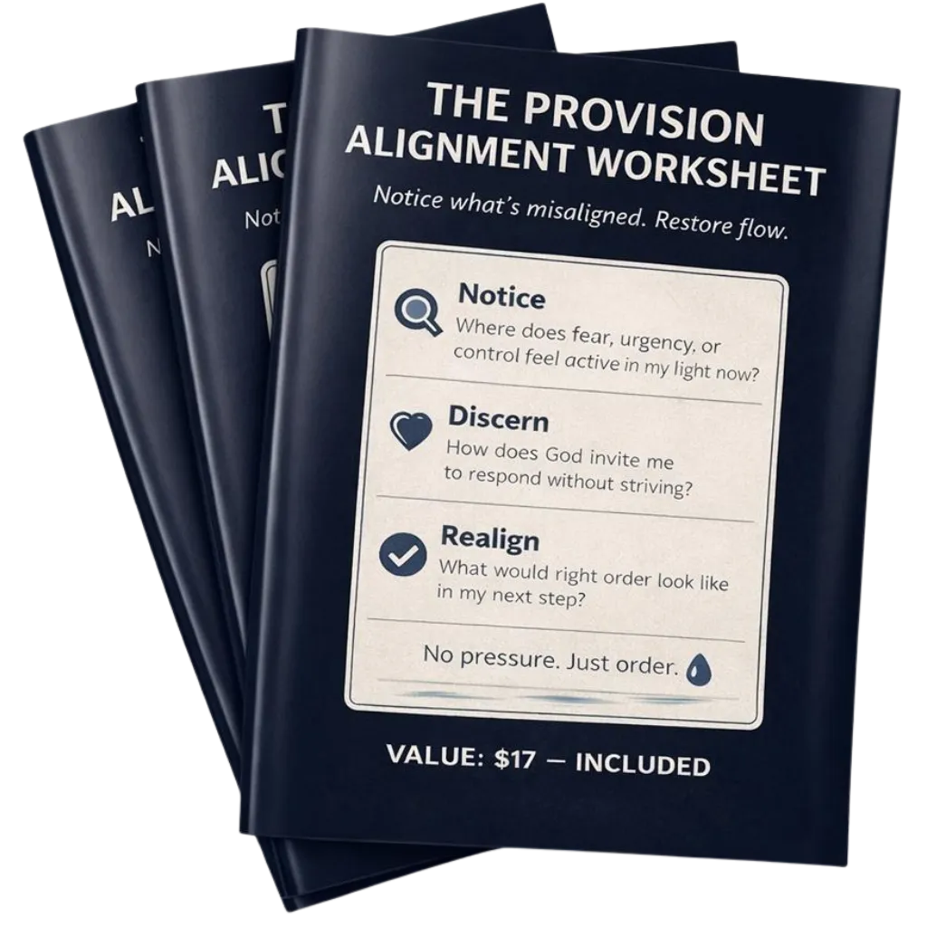 Clear prompts. Honest reflection. Grounded next steps. Designed to help you pause, discern, and realign, so provision can reorganize naturally.